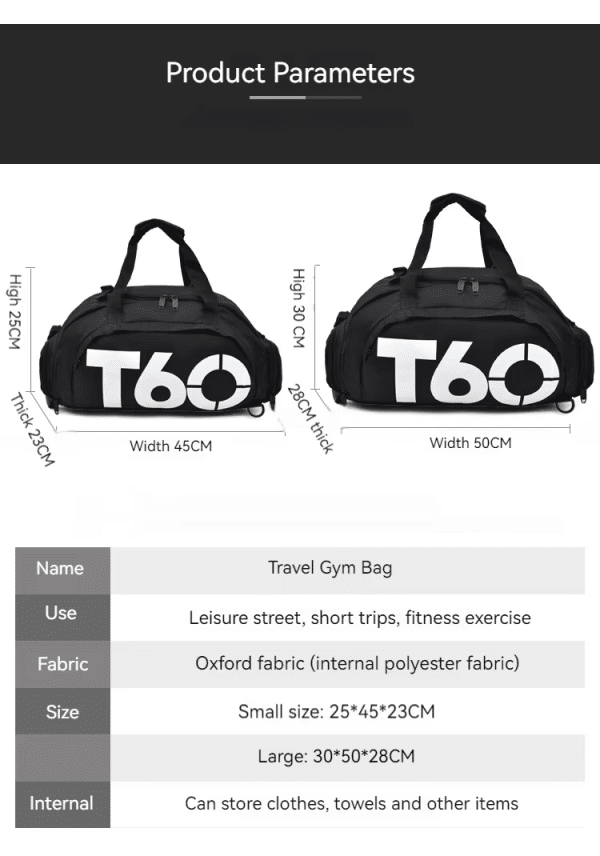 T60 PowerDuffel™ – Waterproof Sports, Gym & Travel Bag(Black | Grey)